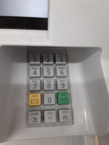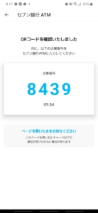 6.QRコードを読み取ると、あなたのスマホに4桁の企業番号が送られてきます。4桁の企業番号をATMの右下にある数字キーで入力します。